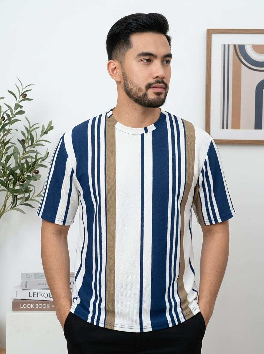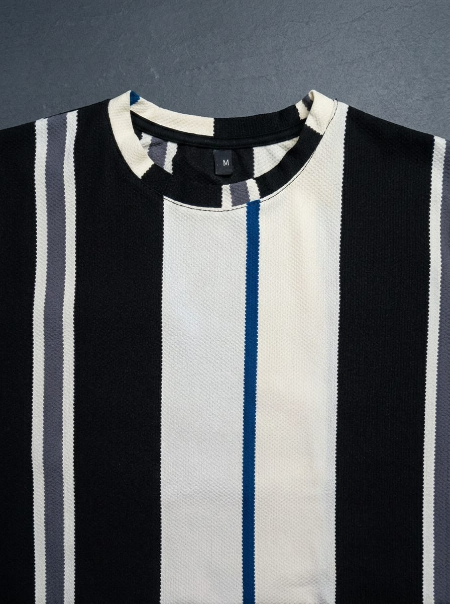 Old Money Drop Shoulder Vertical Stripes T-Shirt – Premium Lycra China Fabric