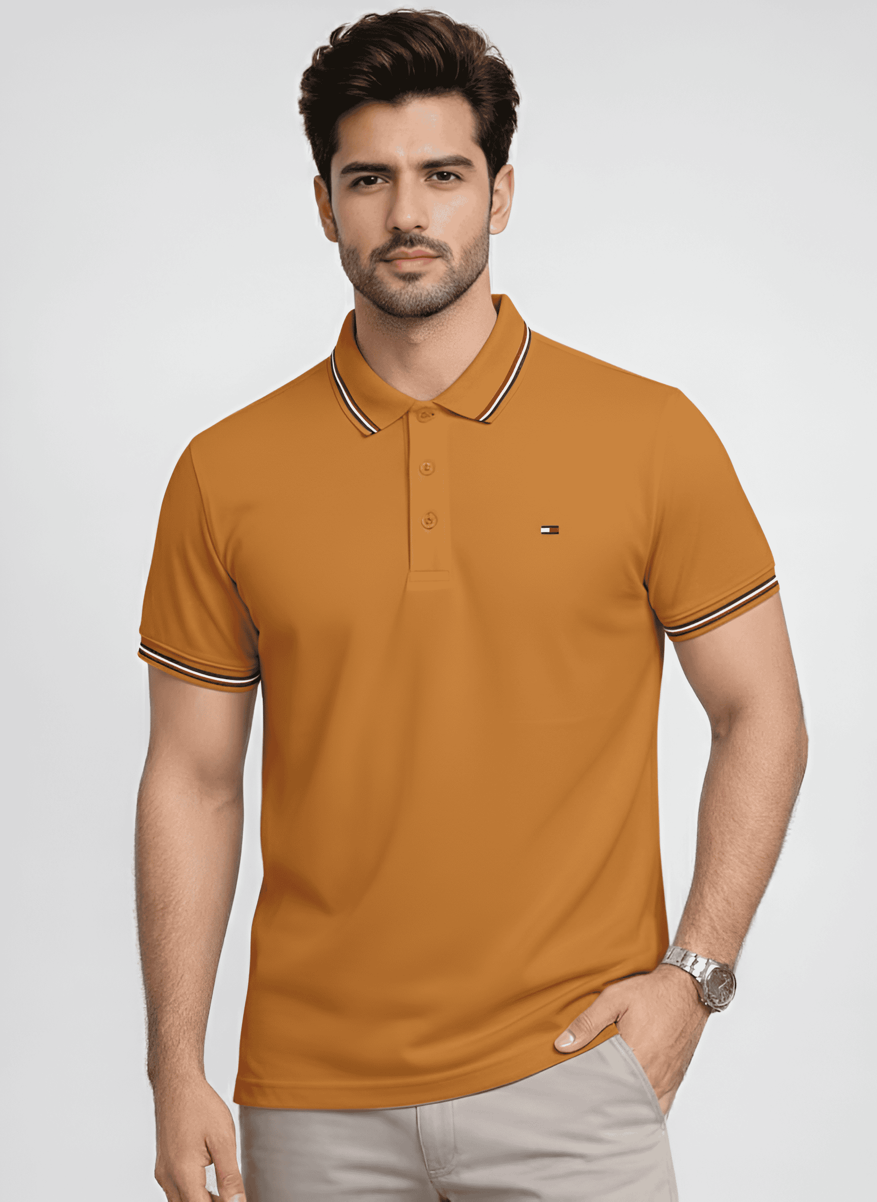 Designed for men who appreciate timeless fashion, this Tommy Hilfiger Premium T-Shirt blends classic style with everyday comfort. Crafted from high-quality, breathable fabric, it offers a smooth feel and a structured fit that enhances your overall look. The iconic polo collar and clean silhouette make it easy to dress up or down, whether paired with jeans for a relaxed vibe or chinos for a refined appearance. Built to last and styled to impress, this polo T-shirt is a true wardrobe essential for effortless, confident wear.