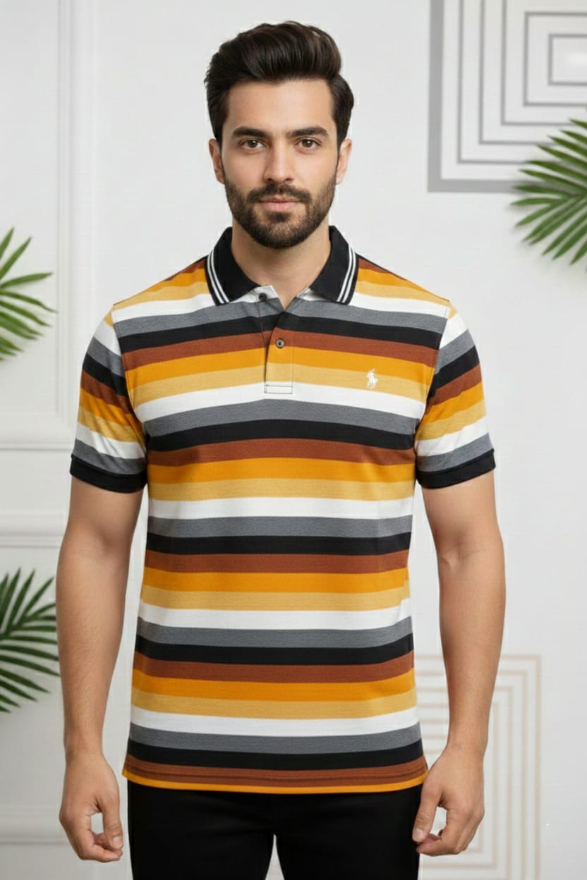 Upgrade your wardrobe with this Striped Polo Collar T-Shirt, crafted from soft, breathable cotton for ultimate comfort. The classic polo collar paired with stylish stripes adds a modern, trendy touch to your look. Slim-fit and durable, this T-shirt is perfect for casual outings, office wear, or evening events. Available in multiple colors, it combines elegance, comfort, and style in one versatile piece.